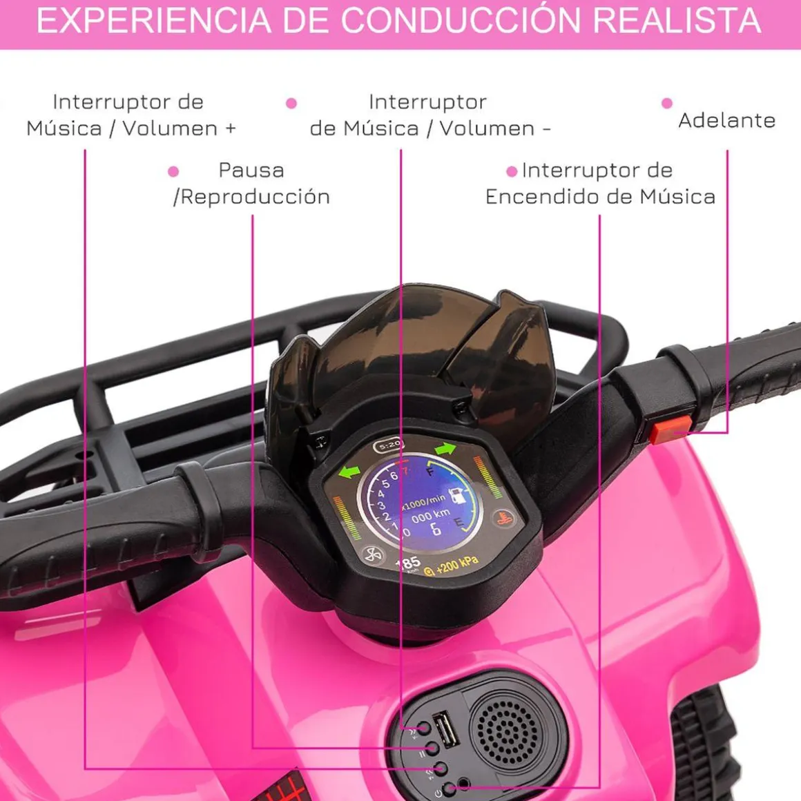 Homcom – Quad eléctrico 6V rosa, un Quad equipado con funciones realistas para fomentar la imaginación y el espíritu aventurero del niño.