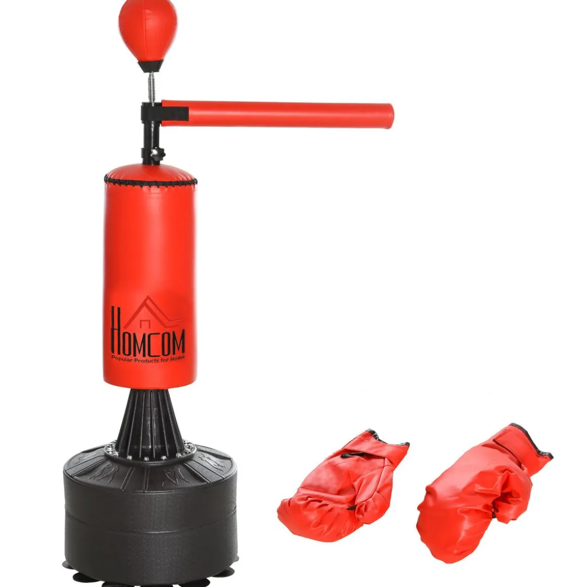 Homcom – Saco de boxeo de pie con brazo giratorio. ¿Sabías que el boxeo es un deporte muy completo y es ideal para descargar tensiones y ejercitar distintos músculos del cuerpo? Con la práctica de esta disciplina, mejoramos la flexibilidad, agilidad, reacción de movimientos, etc. Además, con este punching ball con barra giratoria podrás realizar un entrenamiento integral y profesional en casa. Cuenta con un saco de boxeo de pie, una bola superior y una barra giratoria. Y la base se puede llenar con agua o arena para mayor estabilidad.