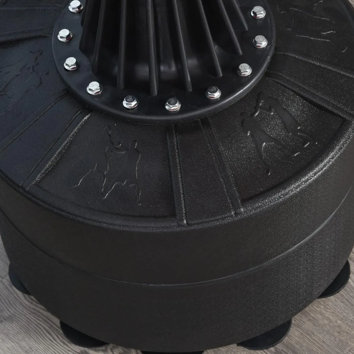 - Resistente y muy estable. Cuenta con una gran base con ventosas para que se adhiera firmemente en el suelo, y se puede llenar con agua o arena para mayor estabilidad y resistencia a los golpes.