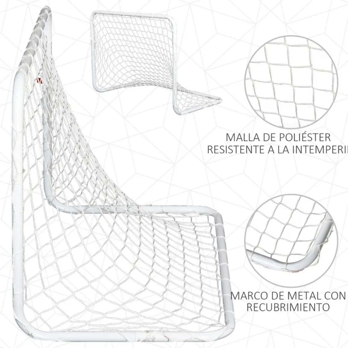- Cada portería de fútbol está hecha de un marco de metal con revestimiento en polvo y malla de poliéster, apta para todas las edades.