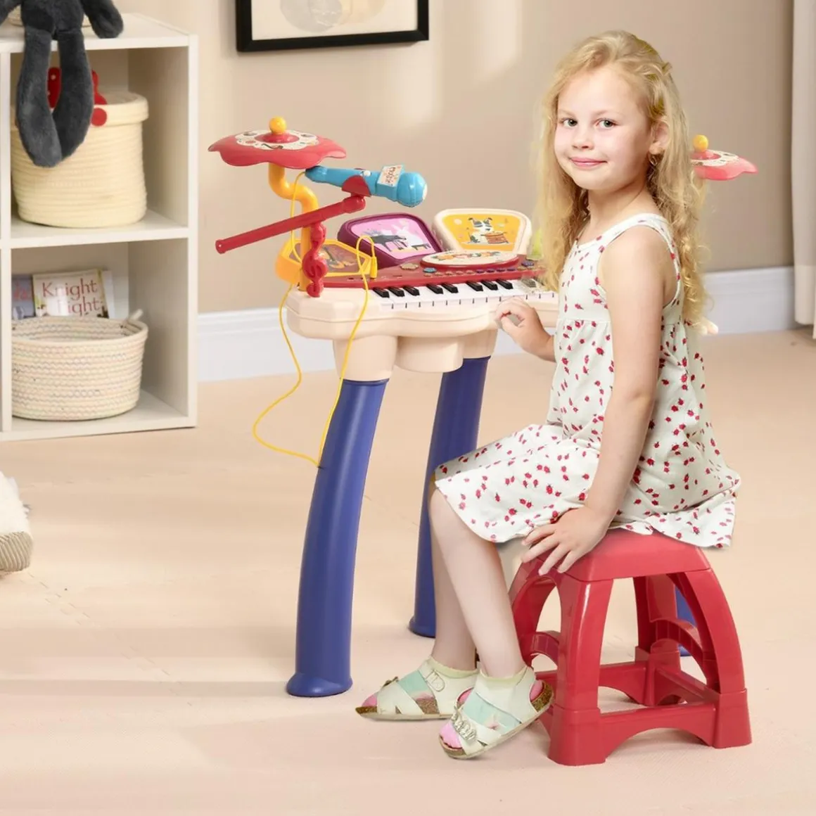 - Juego completo. Este piano para niños viene con un taburete a juego y baquetas que se enganchan al instrumento para una experiencia musical completa. Es un juguete educativo musical para proporcionar a los niños de entre 3-6 años horas de diversión y aprendizaje.
