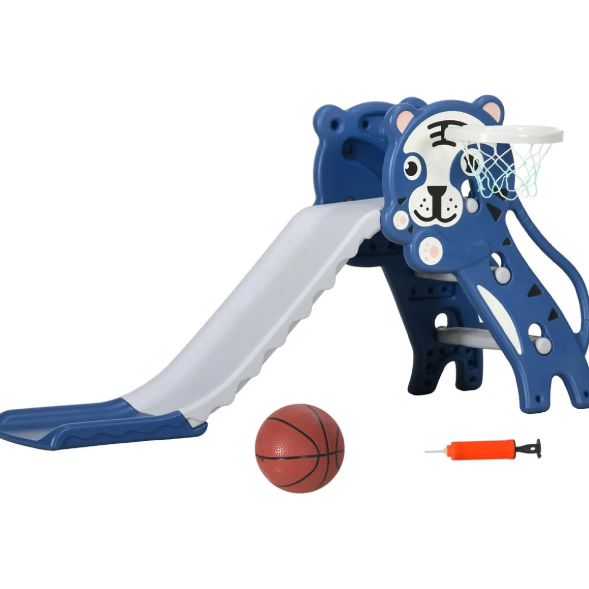 Homcom – Tobogán de interior Tigre. Diseñado para proporcionar horas de diversión, este tobogán para niños cuenta con 2 escaleras antideslizantes para garantizar a los más pequeños un apoyo seguro y una estructura confiable. El tobogán también cuenta con una canasta de baloncesto montada lateralmente para que los niños se diviertan de varias maneras con la misma estructura. Gracias a los adorables dibujos del tigre, este tobogán infantil de interior añadirá un toque juguetón a los espacios de juego de los más pequeños.