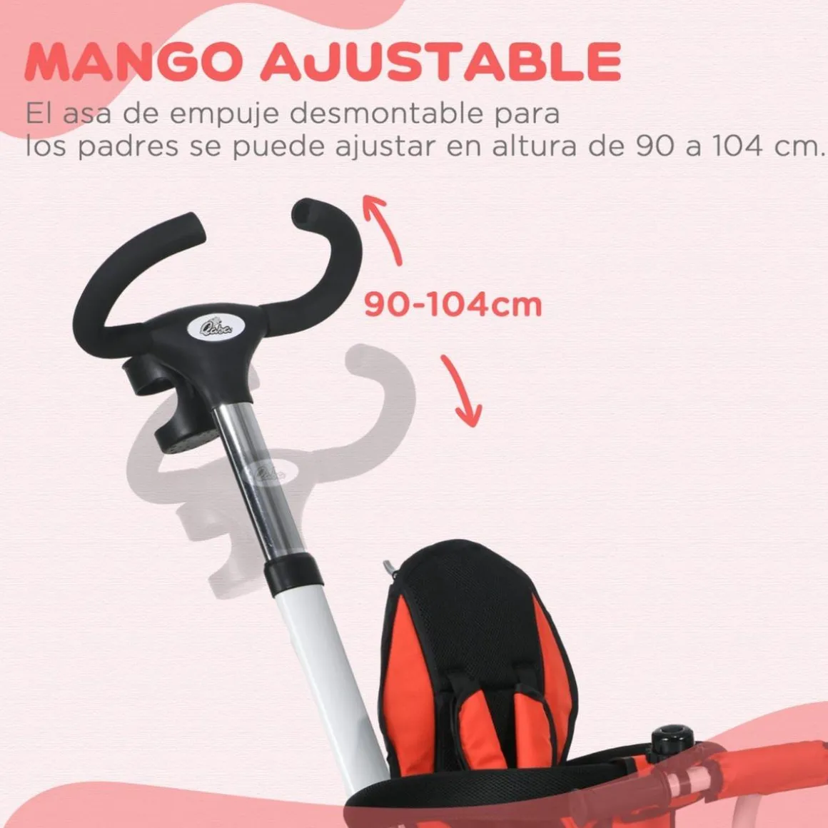 - Sistema de dirección ajustable: El manillar ajustable y extraíble permite que los padres controlen la dirección con facilidad.