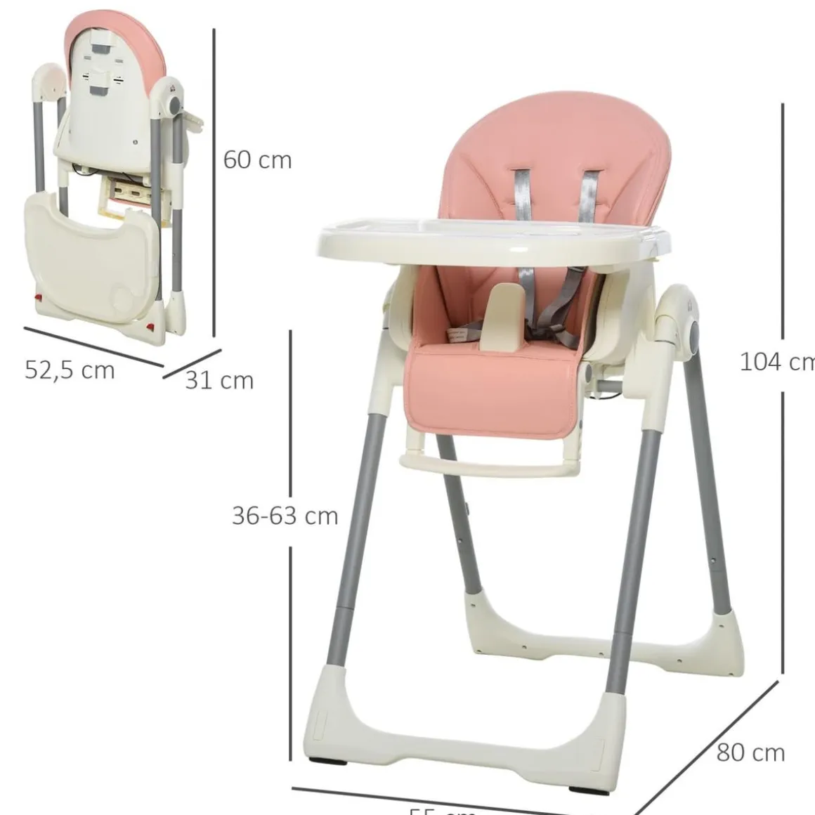 Homcom – Trona evolutiva rosa, una trona trona multiposiciones que se adapta a las diferentes necesidades de cada etapa del bebé.
