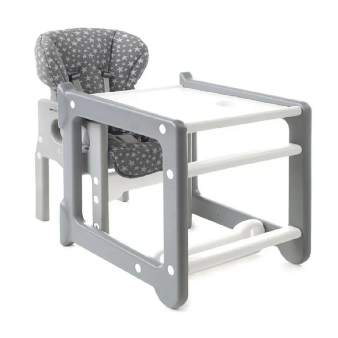 Este innovador producto combina las funcionalidades de una trona, una silla y una mesa, adaptándose a las necesidades cambiantes de tu hijo.