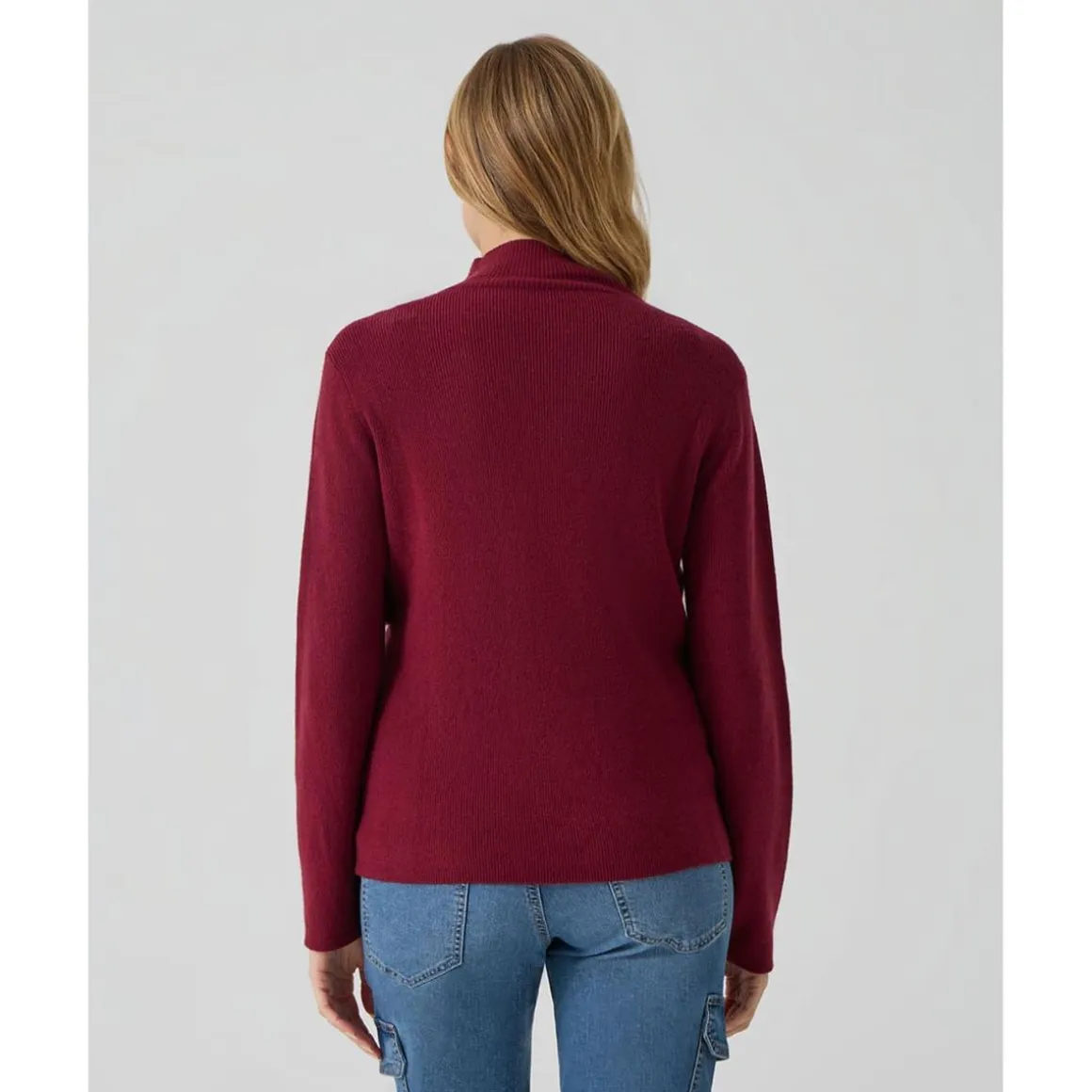 Este jersey tricot en color burdeos está diseñado para la etapa de embarazo y lactancia. Presenta un panel superior que se levanta fácilmente, con aberturas ocultas debajo que permiten dar el pecho con total comodidad y discreción. Su tejido de punto elástico se adapta perfectamente a los cambios del cuerpo, garantizando confort en todo momento.