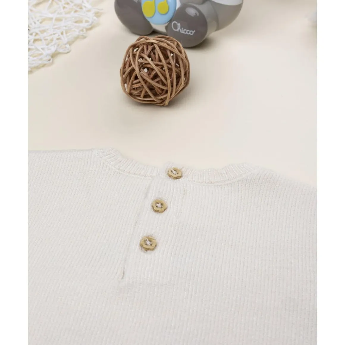 El jersey tricot beige con cervatillo es una prenda dulce y cálida para los meses fríos. De manga larga y cuello redondo, presenta un bordado de cervatillo con lazo aplicado que aporta un toque tierno y elegante. Su tejido mezcla viscosa, poliéster y poliamida, garantizando suavidad, elasticidad y durabilidad.