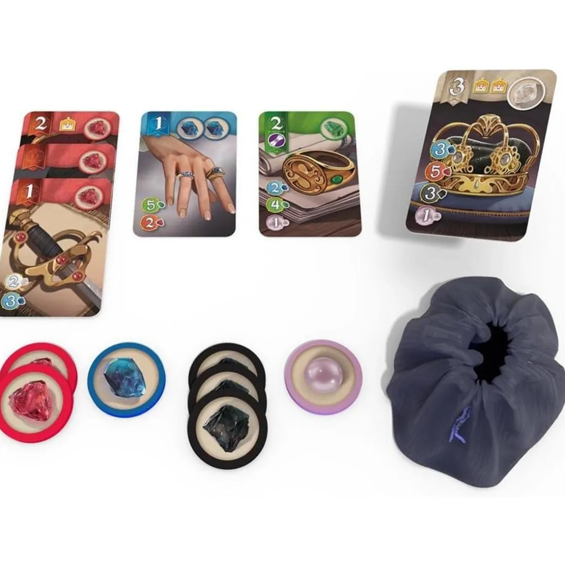Este juego fascinante incluye 67 cartas de Joya, una bolsa, tres pergaminos de Privilegio, un tablero, 25 fichas, cuatro cartas de la Realeza y un reglamento. Los pergaminos de Privilegio son una adición exclusiva de Splendor Duel que realmente pueden cambiar el rumbo del juego a tu favor. ¡Úsalos sabiamente y podrías convertirte en el vencedor del duelo!