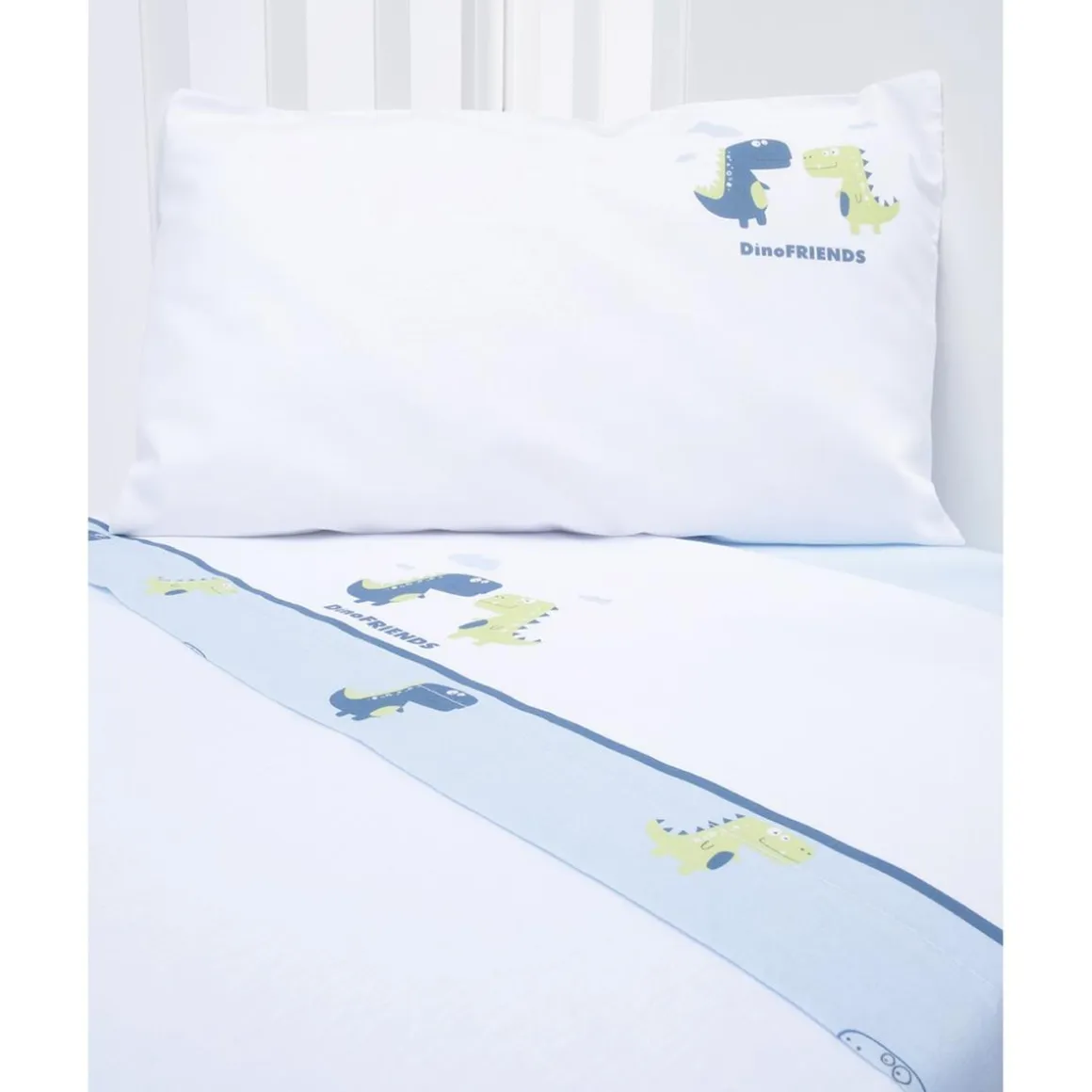 - 1 funda de almohada blanca con el mismo diseño de dinosaurio (35×60 cm)
