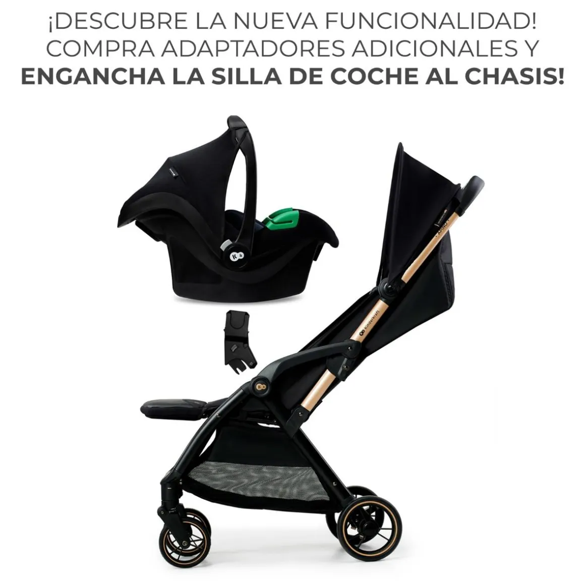 La silla de paseo Apino permite instalar adaptadores universales en el chasis de forma que puedas enganchar una silla de coche de 40-75 cm (0-13 kg) y crear un TRAVEL SYSTEM. Esta opción es de lo más interesante para cualquier familia. Imagínate que el peque se queda dormido en el coche, pero tenéis prisa por salir. Desmonta la silla y engánchala al chasis, ¡sin despertar al crío! Los adaptadores se deben comprar por separado.