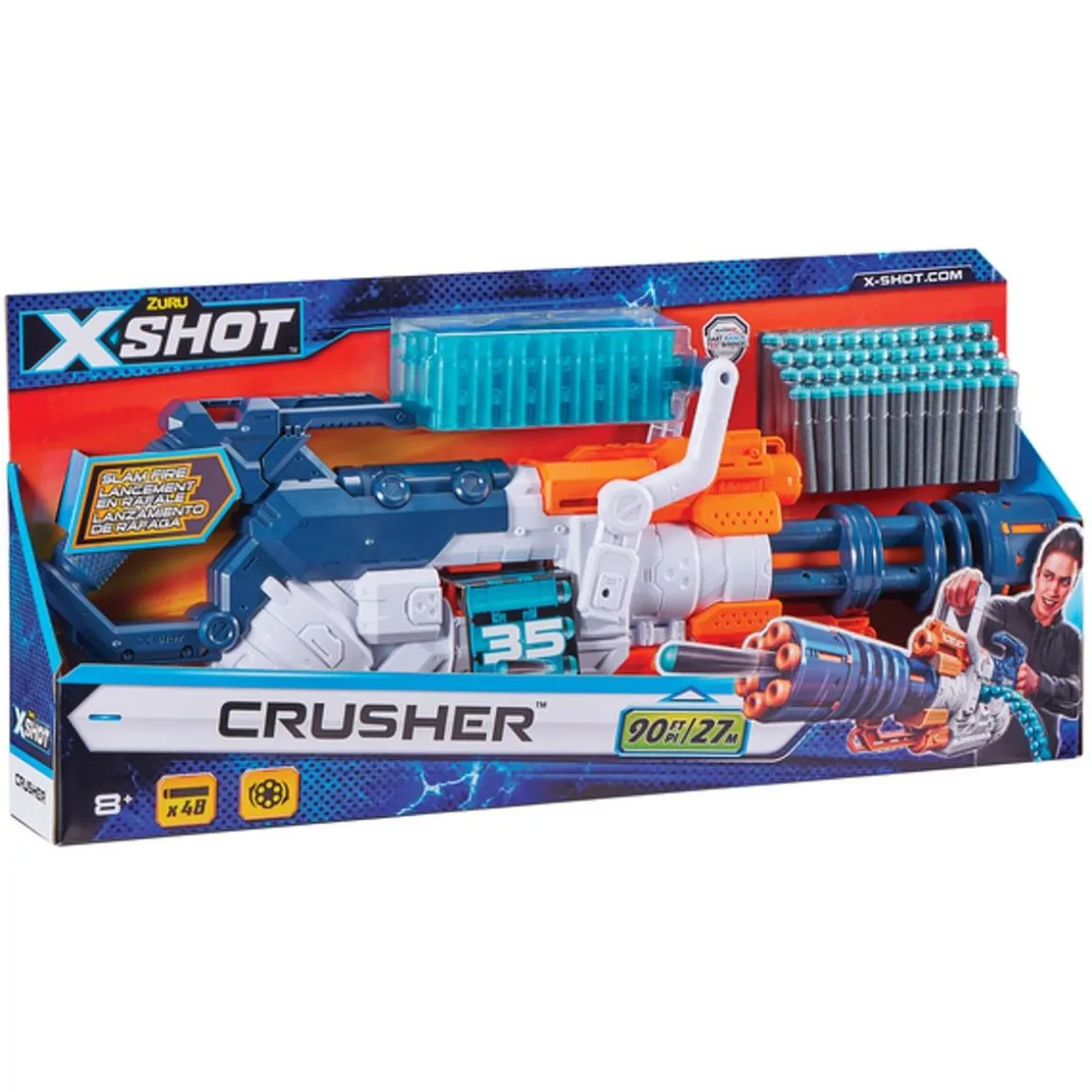 Juega como un campeón gracias a su cinturón con capacidad para 35 dardos, que te permitirá mantener la acción sin hacer pausas. Y no te preocupes si crees que se acaban, porque el Excel Crusher viene con 48 dardos adicionales para que la diversión nunca se detenga. ¿Te imaginas poder disparar hasta 4 dardos por segundo? Con el modo Slam-Fire, es posible, y verás cómo el tambor giratorio automáticamente lanza una ráfaga después de otra.