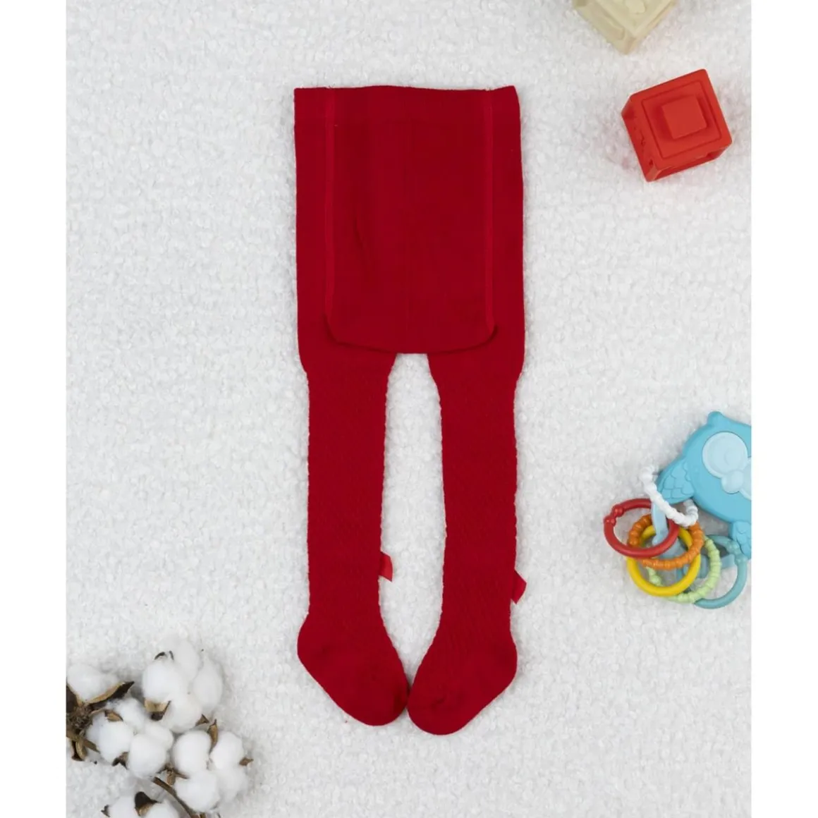 Leotardo para niña en rojo liso con lazo aplicado tono sobre tono, ideal para las fiestas de invierno. El punto elástico ofrece ajuste cómodo y abrigo sin renunciar a la libertad de movimiento. Un accesorio fácil de combinar con vestidos y faldas, que aporta un toque elegante a los looks navideños y de temporada.