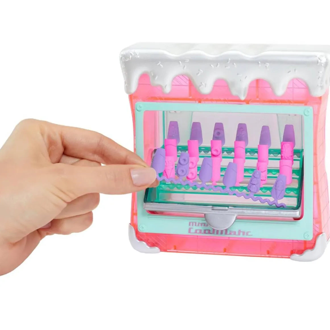 Hay 15 sorpresas que incluyen una estación de uñas que también funciona como un congelador de helados para mostrar las uñas, esmaltes de uñas diseñados para parecerse a batidos, un frasco de dulces que también sirve para contener brillo de uñas real, una lima de uñas para darles forma antes de decorarlas, ¡adhesivos para pegar las uñas y pegatinas para decorar tus uñas!