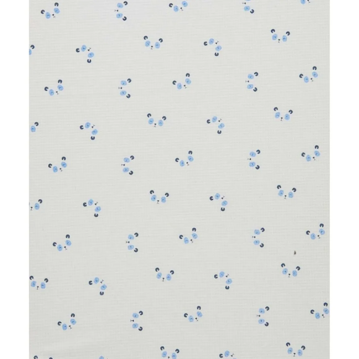Esta adorable manta de verano está confeccionada en algodón de nido de abeja blanco y adornada con un estampado completo de pequeños rostros de ositos en tonos azules. Sus dimensiones de 100×120 cm la hacen ideal para las noches frescas de verano.