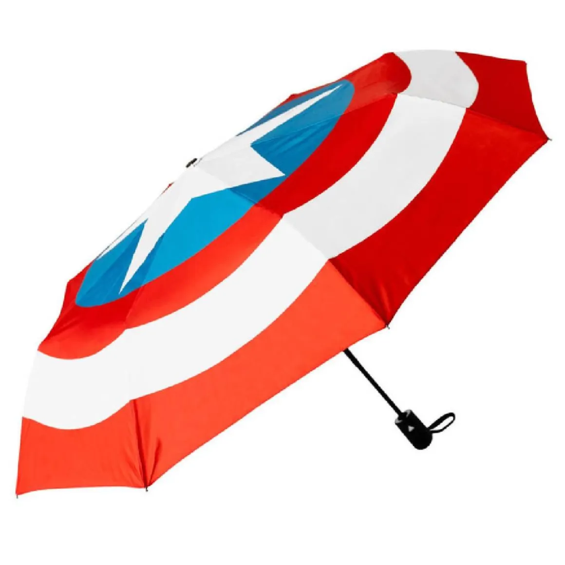 Marvel – Paraguas Capitán América, un paraguas inspirado en el escudo del Superhéroe de Marvel el Capitán América, que añade un toque de fantasía y color a tu rutina diaria.