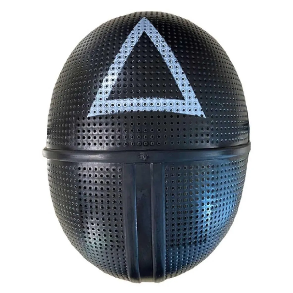 Diseño fiel a la serie: Esta máscara reproduce meticulosamente el icónico símbolo del Triángulo de los Guardianes en «El Juego del Calamar», permitiéndote encarnar a uno de los enigmáticos vigilantes de la serie.