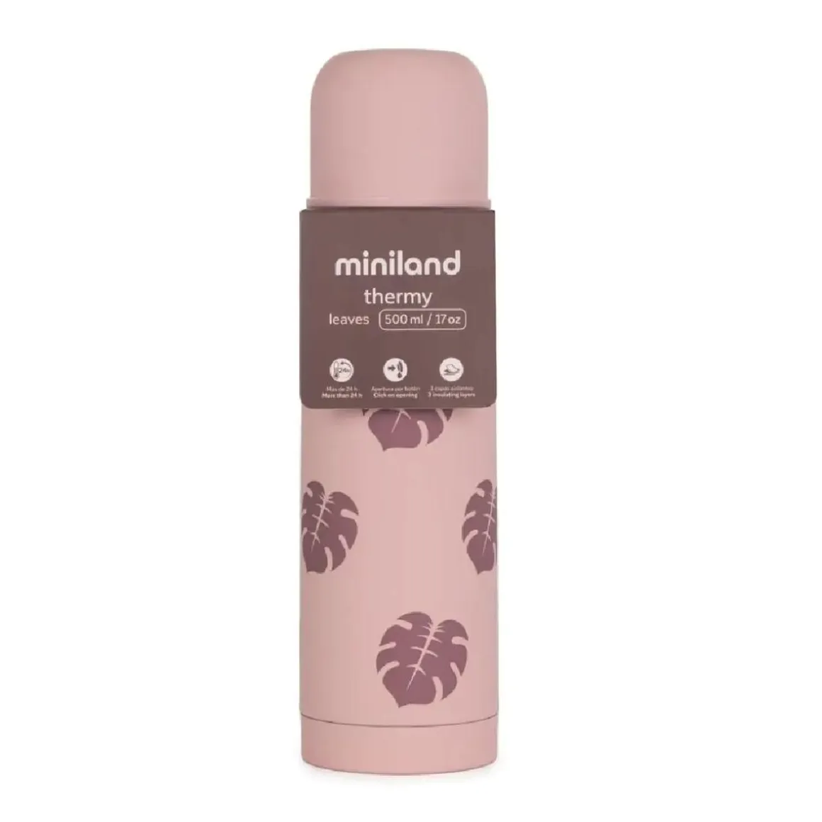 Miniland – Termo para líquidos 500 ml Thermy Leaves, es la solución perfecta para mantener las bebidas de tu bebé a la temperatura ideal durante más de 24 horas.