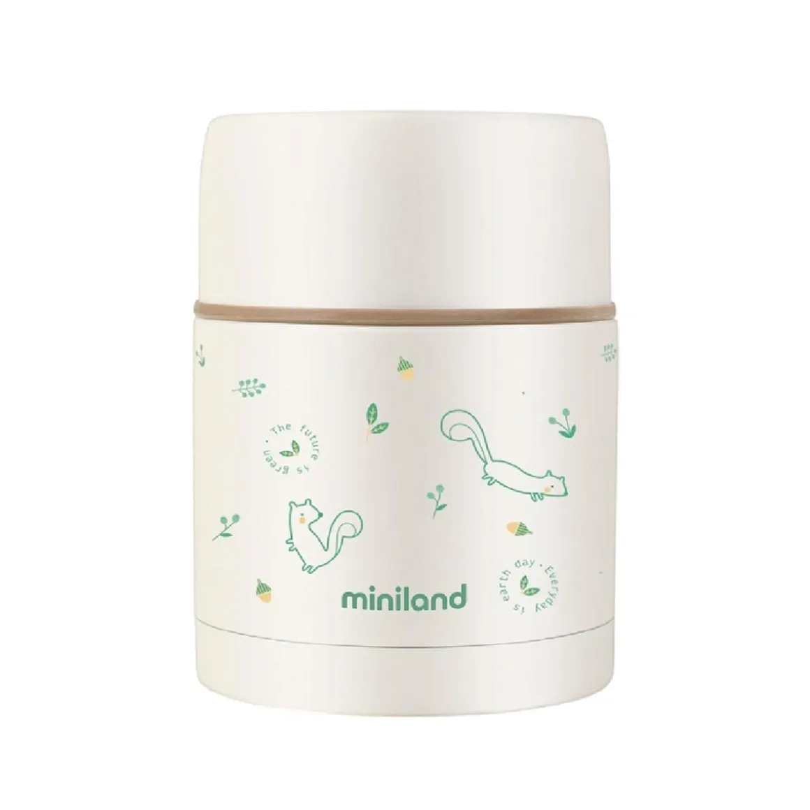 Miniland – Termo para sólidos Nature Chip ardillas 600ml, el compañero ideal para conservar y transportar las comidas de tu bebé manteniendo su temperatura y frescura.