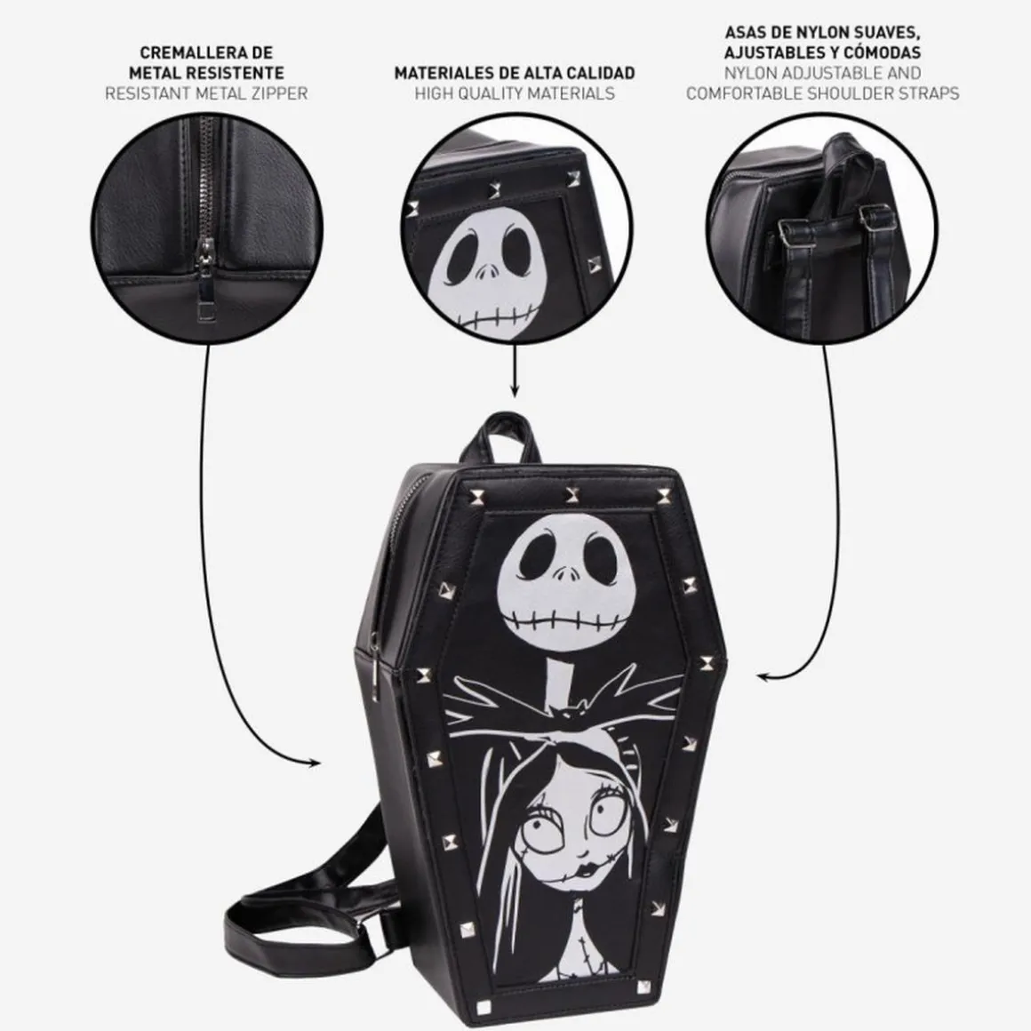 - Diseño exclusivo: Decorada con el icónico rostro de Jack Skellington, esta mochila destaca por su estilo inconfundible.