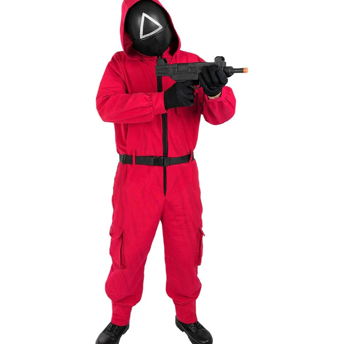 Adéntrate en el universo de El Juego del Calamar con este impresionante Mono oficial Netflix para adulto. Este set incluye un mono rojo con capucha, cinturón y guantes, elaborado en 100% poliéster. Ideal para fiestas temáticas, cosplay o eventos especiales. ¡Conviértete en uno de los misteriosos guardias de esta icónica serie y deja a todos sorprendidos!
