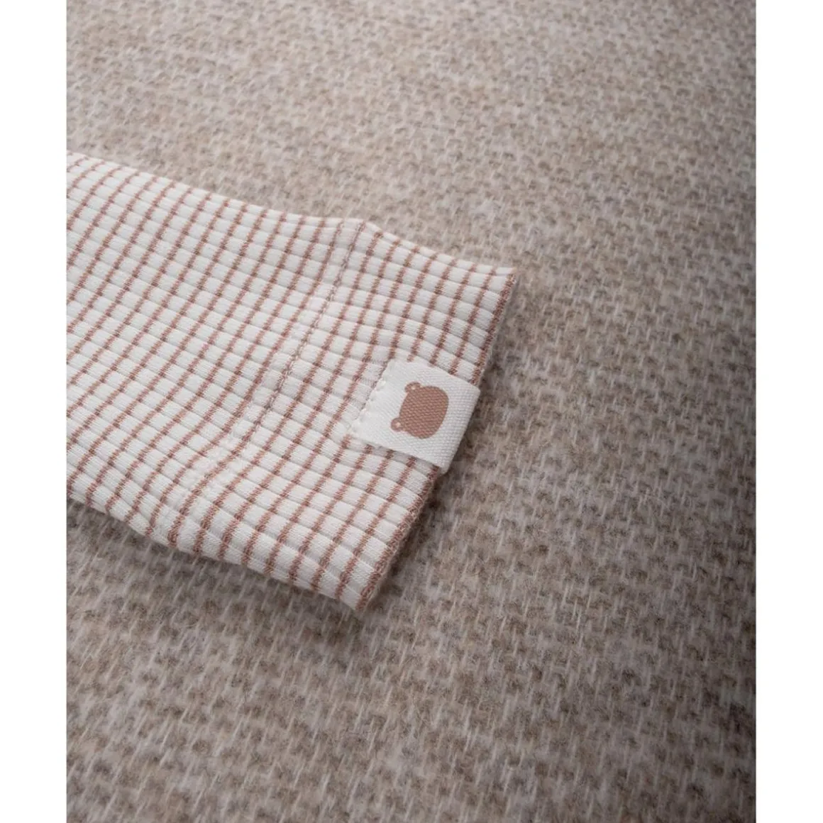 Tierna pijamita de bebé. La prenda se presenta en una sola pieza con zapatillas coordinadas y se desarrolla en beige total con estampado de bolsillos de parche y falsos botones de ojal marrones. El ajuste es suave y práctico gracias a los botones automáticos en la entrepierna. La prenda es de algodón oeko-tex, probado para sustancias nocivas garantiza alta seguridad. Accesorios no a la venta. El paquete contiene solo la prenda de vestir.