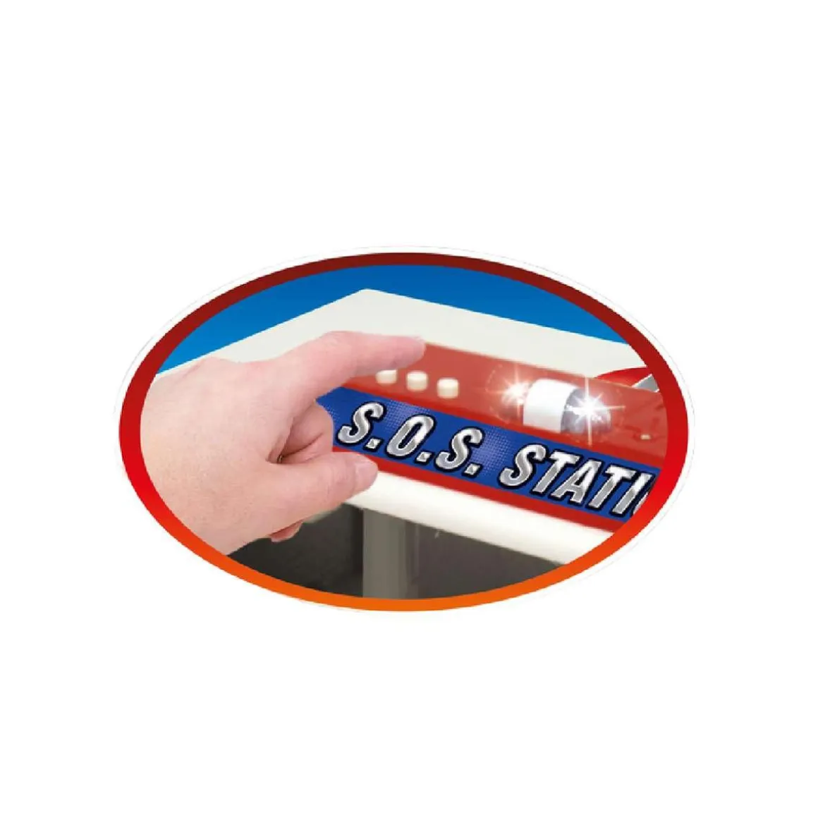 La Estación S.O.S incluye un camión de bomberos, un coche de policía y una ambulancia para ayudar a proteger y cuidar tu ciudad.