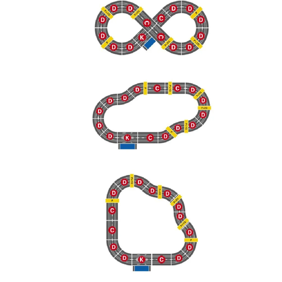 - 3 circuitos posibles: monta la pista en diferentes configuraciones.