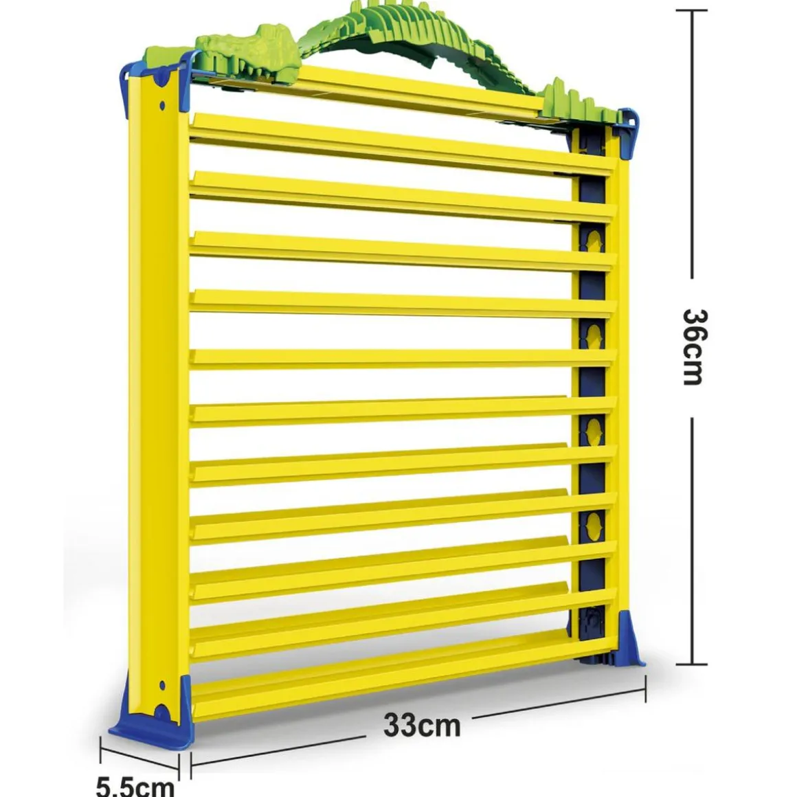 La manija con forma de cocodrilo no es solo decorativa: se convierte en la estructura de soporte para el loop vertical, añadiendo dinamismo y adrenalina a cada carrera. Gracias a este diseño creativo, los niños podrán guardar sus coches y lanzarlos a toda velocidad en un circuito espectacular, fomentando la imaginación y la diversión.