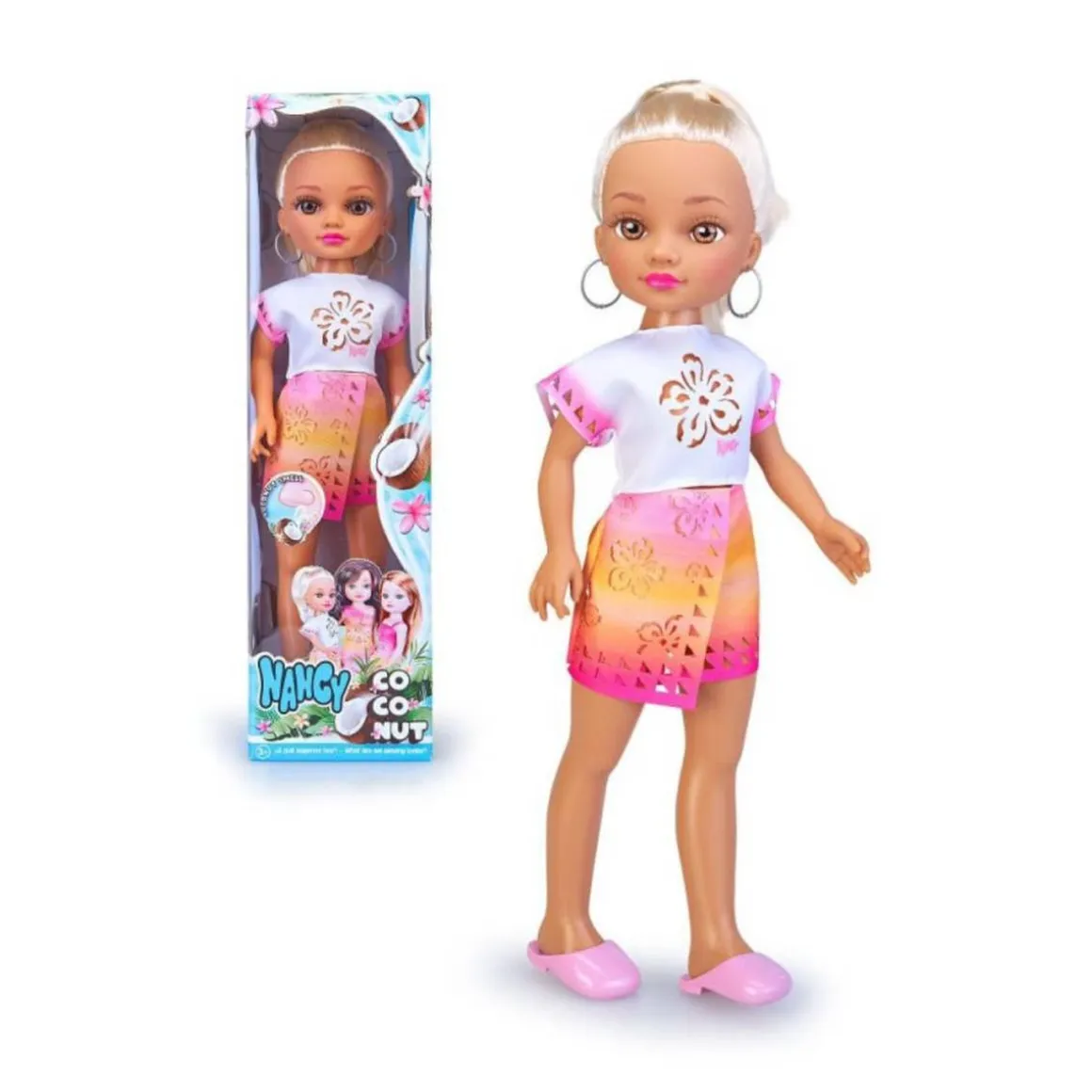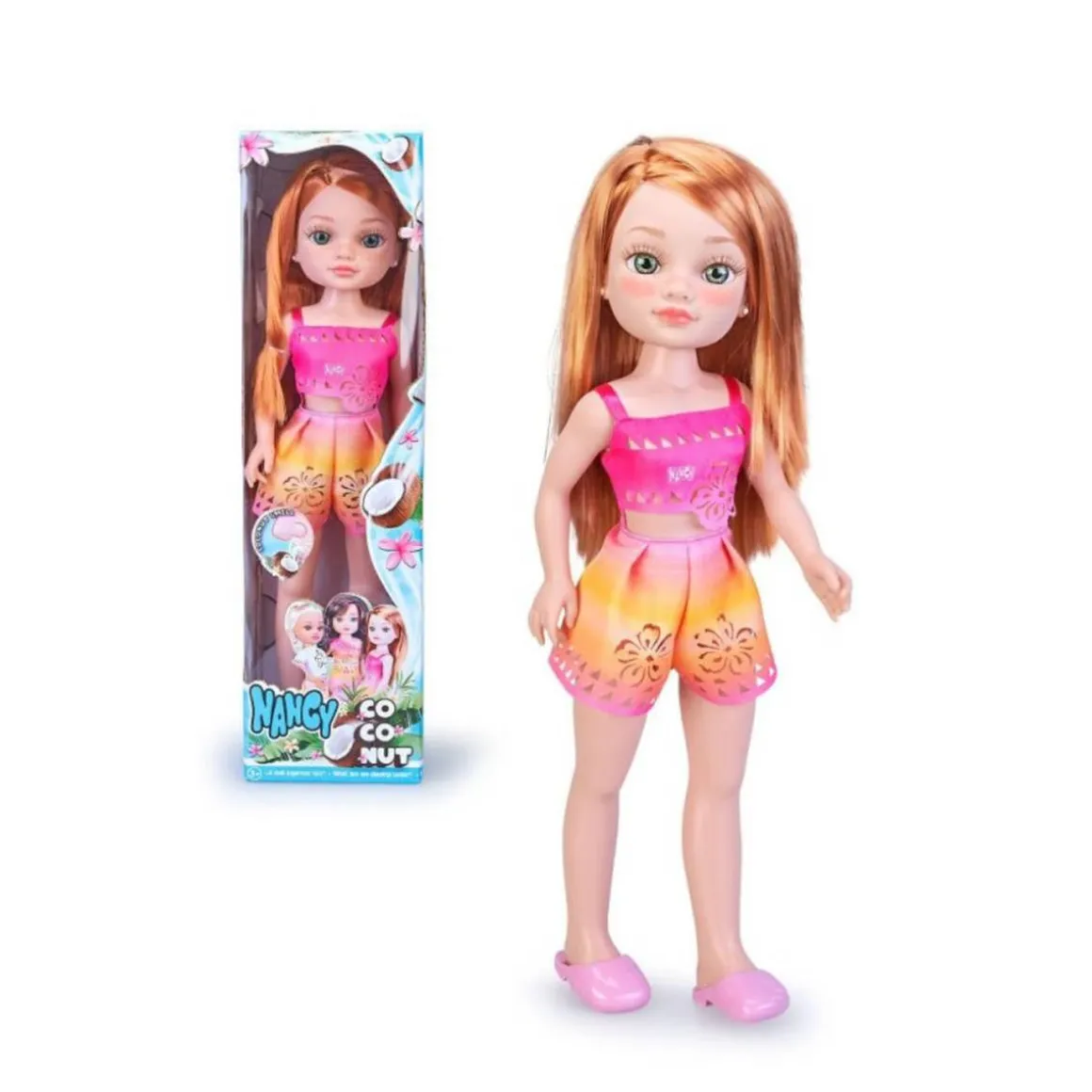 ¡Descubre la magia del verano con la muñeca Nancy Coconut! Esta encantadora muñeca de 42 cm de altura, fabricada por Famosa, está diseñada para transportar a los más pequeños a un mundo tropical lleno de diversión y estilo. Disponible en tres versiones—rubia, morena y pelirroja—cada una con su propio look y personalidad, Nancy Coconut es el regalo perfecto para niñas a partir de 3 años que buscan aventuras imaginativas.