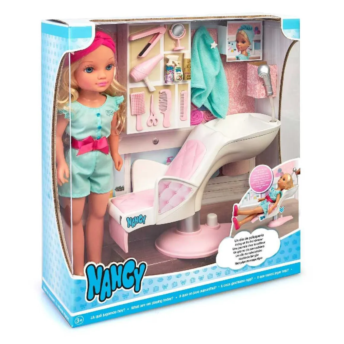 Nancy – Un día en el peluquero, una muñeca Nancy con todo lo necesario para cuidar su cabello.