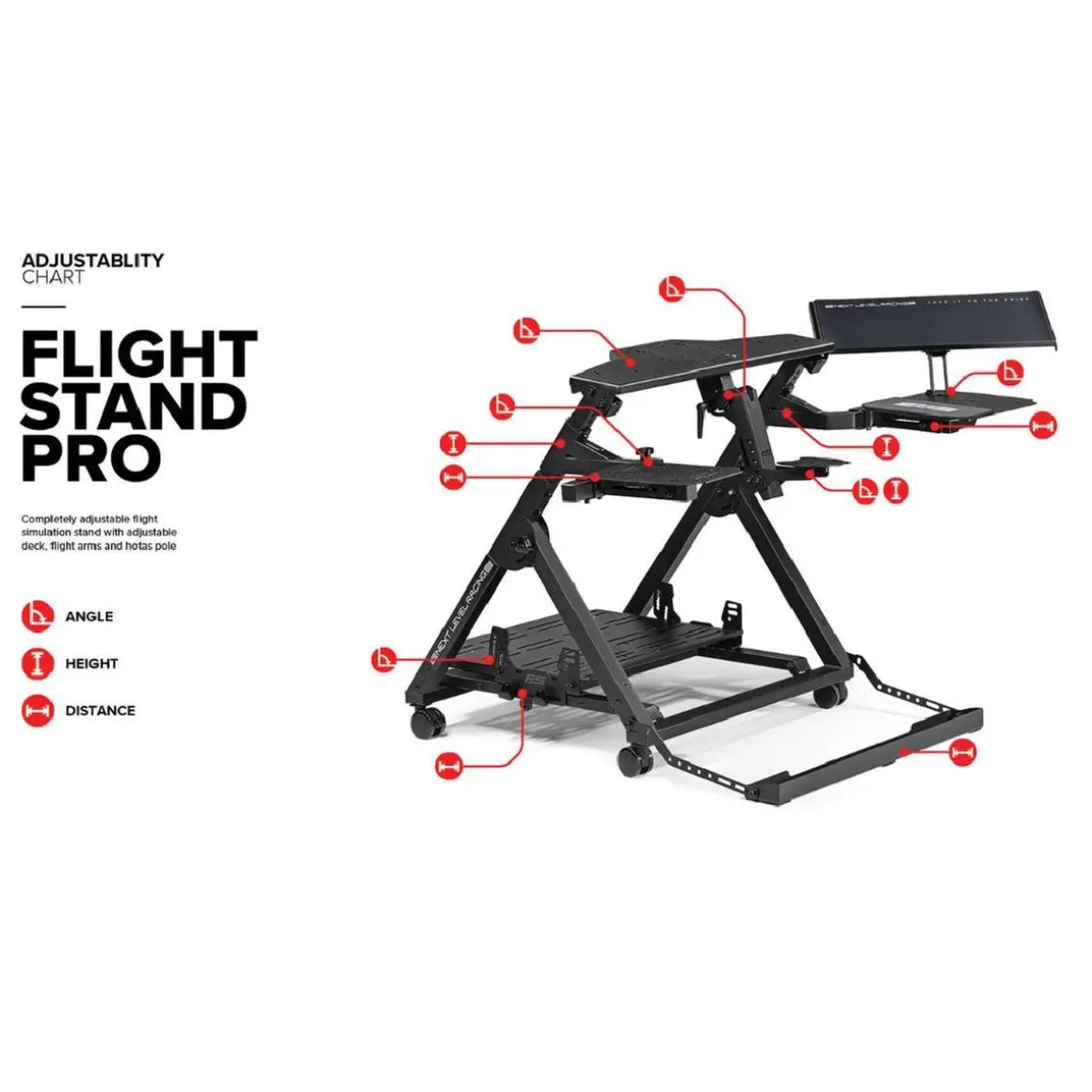 La gama Next Level Racing Flight ha sido diseñada y desarrollada específicamente pensando en los usuarios de vuelo. La combinación de Flight Seat Pro y Flight Stand Pro ofrece una gama de configuraciones diferentes para satisfacer las necesidades de cada usuario de vuelo. La combinación es compatible con la plataforma Next Level Racing Motion Plus, proporcionando una experiencia de vuelo aún más inmersiva. Además, el Flight Stand Pro es compatible con Next Level Racing Flight Seat Pro, lo que garantiza una integración perfecta. Con configuraciones disponibles para configuraciones de aviación general, comercial, espacial, militar y helicópteros, los usuarios pueden elegir la configuración perfecta para satisfacer sus necesidades.