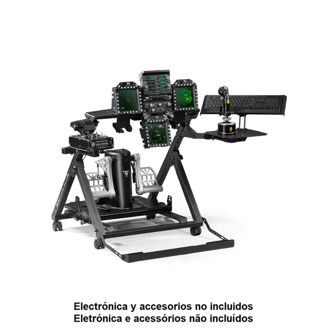 - El poste de montaje central HOTAS con ajuste de altura y ángulo permite una configuración militar realista.