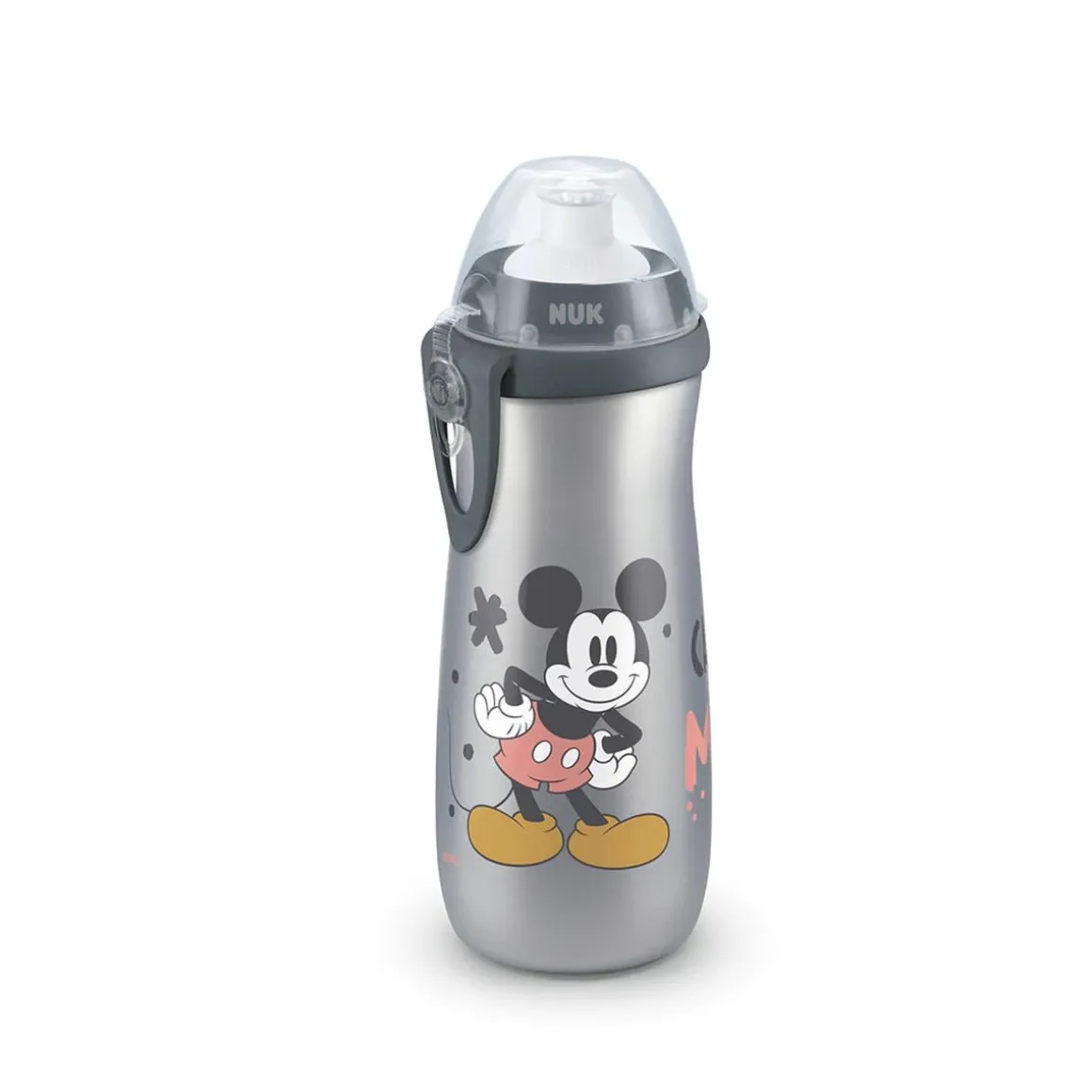 Nuk – Botella aprendizaje Nuk Sports Mickey. La botella Sports Cup contiene una boquilla antiderrames y un clip para cerrar la tapa con mayor sujeción y seguridad ideal para salir con los niños. Además, es ultra ligera y robusta gracias al material resistente PP. Capacidad de 450ml.