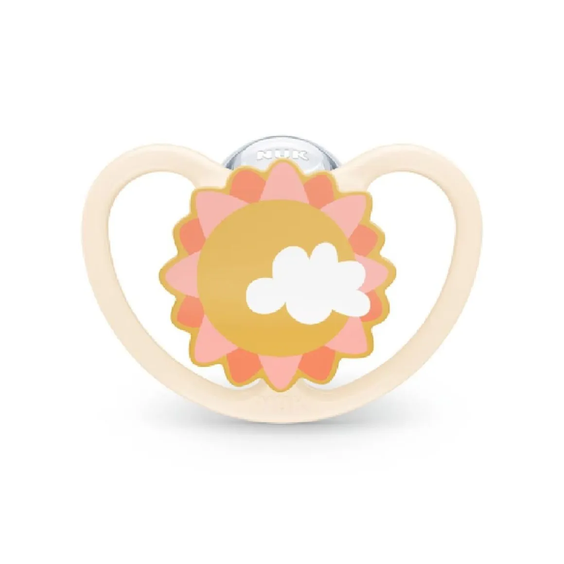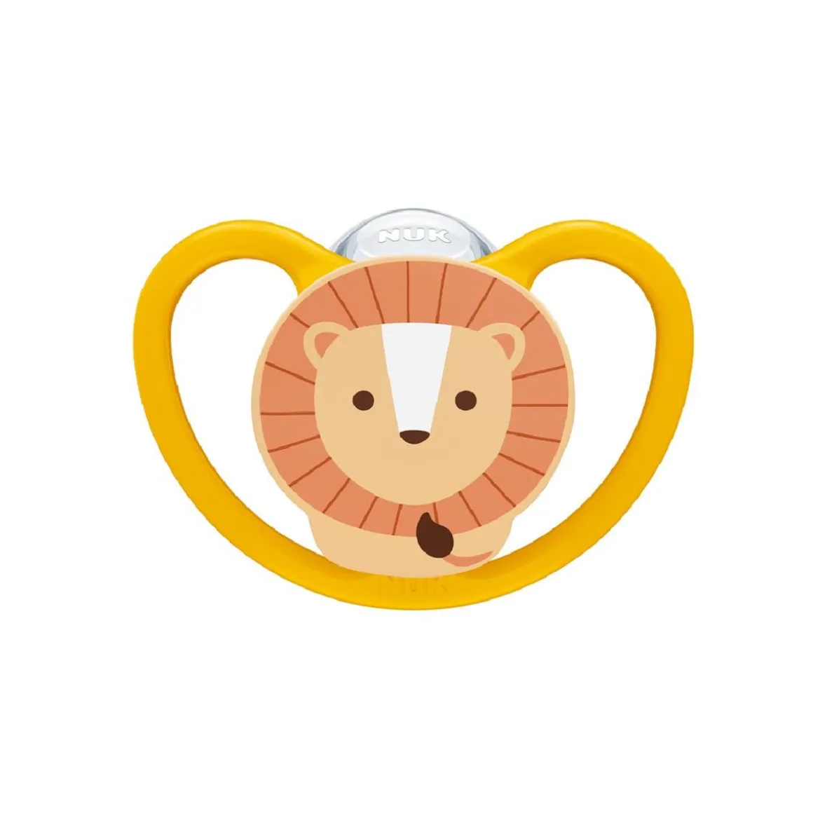 Nuk – Pack 2 chupetes Space silicona 18-36 meses León/Sol, un pack de 2 chupetes de silicona, diseñado para bebés de 18 a 36 meses.