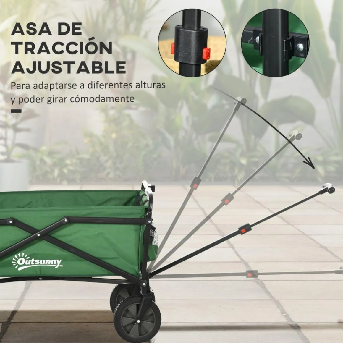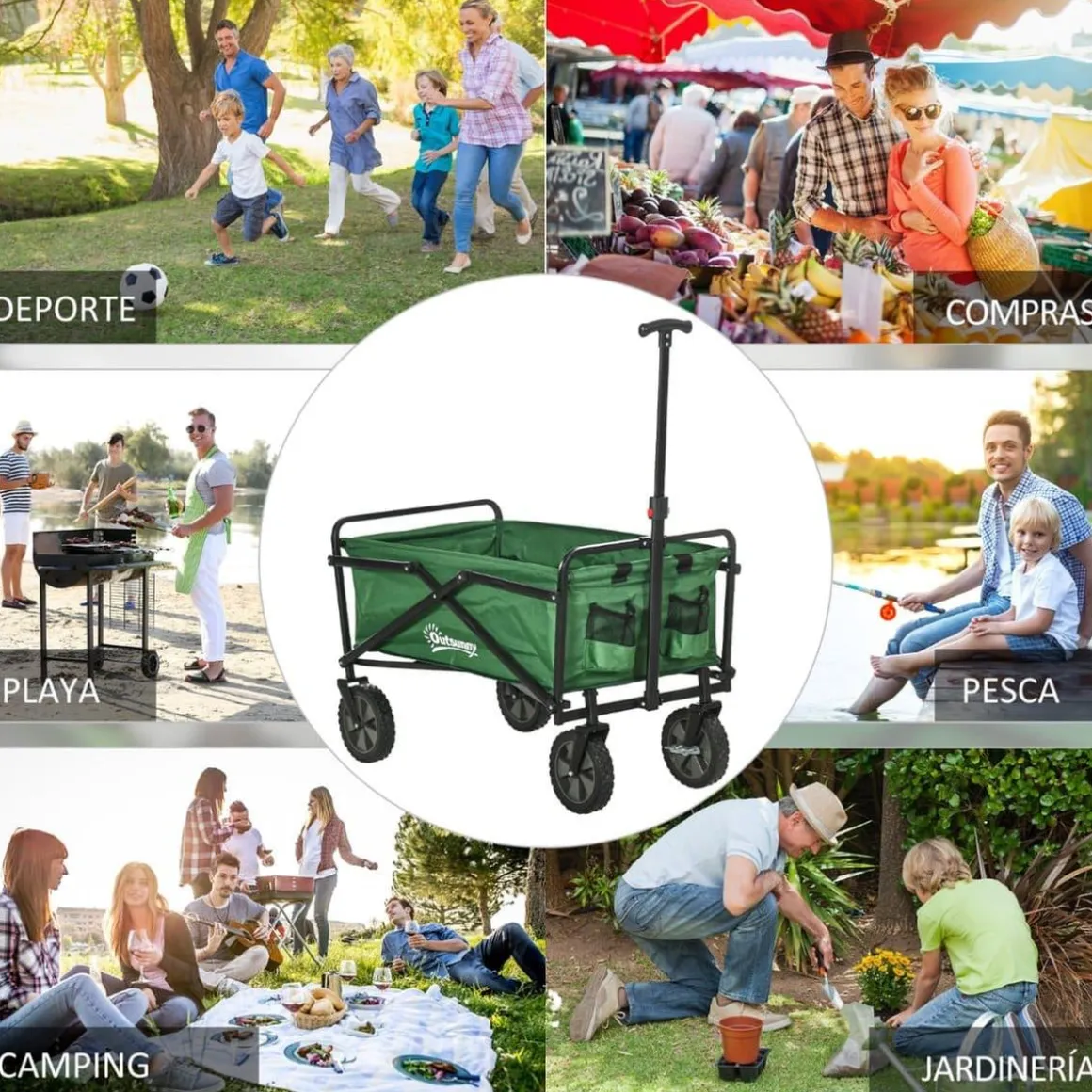 Outsunny – Carro plegable con mango ajustable Verde, un remolque plegable con bolsa grande de almacenaje y capaz de soportar hasta 40 kg de carga, es muy adecuado para compras, deporte, camping o cualquier actividad que necesites transportar artículos.