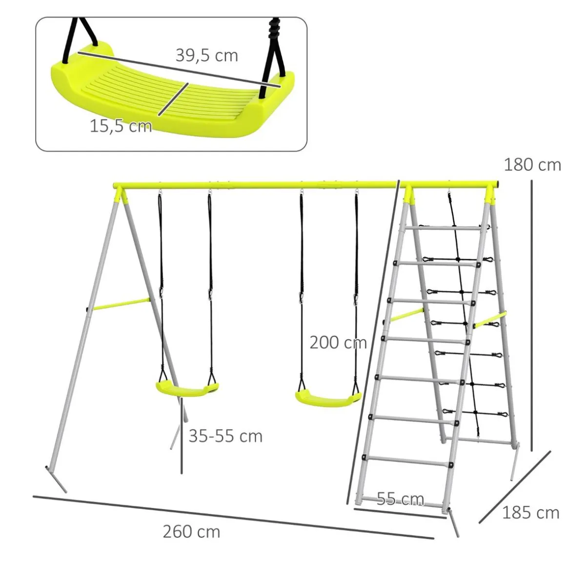 Con el conjunto de columpios Outsunny, tus hijos disfrutarán de horas de entretenimiento y actividad física al aire libre, mientras tú disfrutas de la tranquilidad que ofrece un producto seguro y resistente.