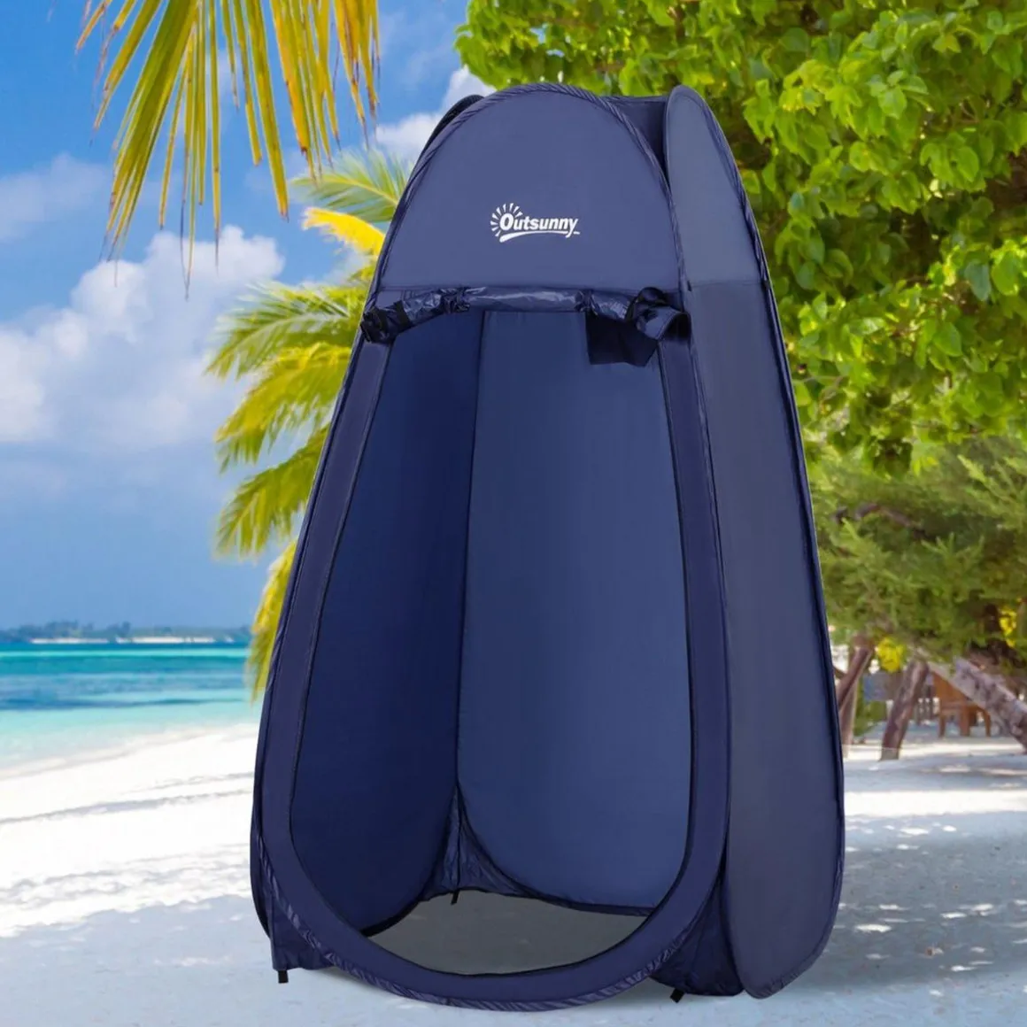 Outsunny – Tienda camping Pop Up Azul oscuro, una tienda ideal para usar como tienda de ducha, como cuarto de baño o como cambiador. Resistente al agua y protección UV para garantizar una buena resistencia a la intemperie.