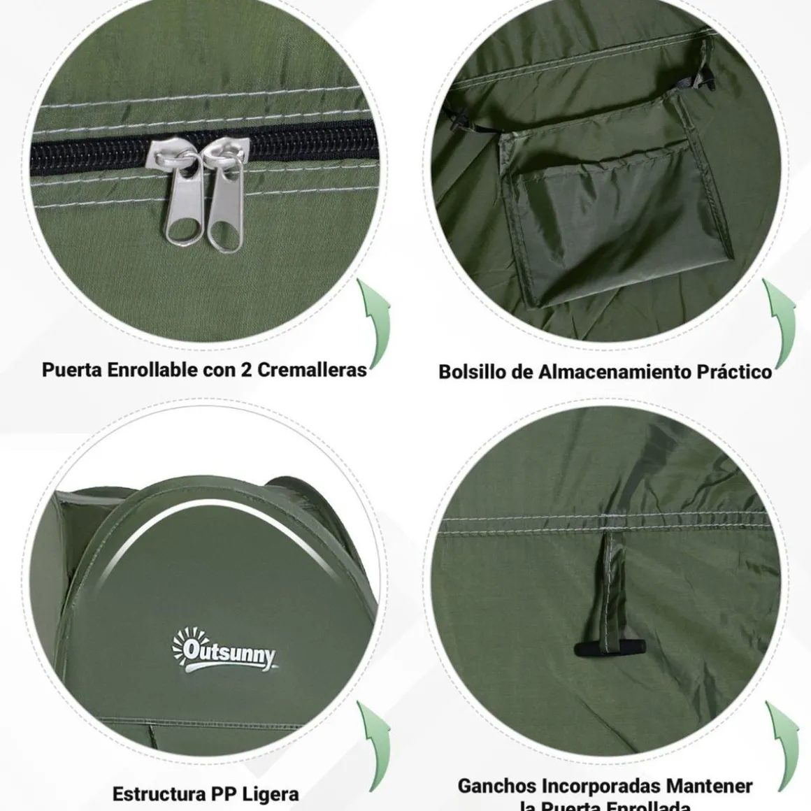 Outsunny – Tienda camping Pop Up Verde, una tienda ideal para usar como tienda de ducha, como cuarto de baño o como cambiador. Resistente al agua y protección UV para garantizar una buena resistencia a la intemperie.