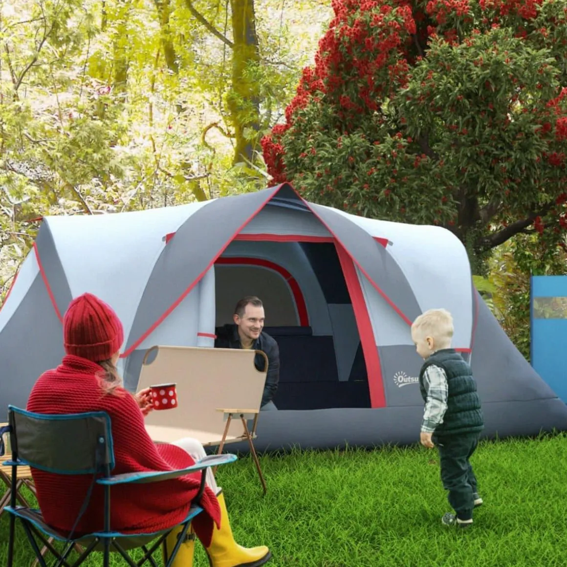 Outsunny – Tienda de campaña 455x230x180 cm Gris, perfecta para familias y amigos que acampan juntos, esta tienda de acampada cuenta con una gran habitación para dormir y socializar, con capacidad para hasta seis personas.