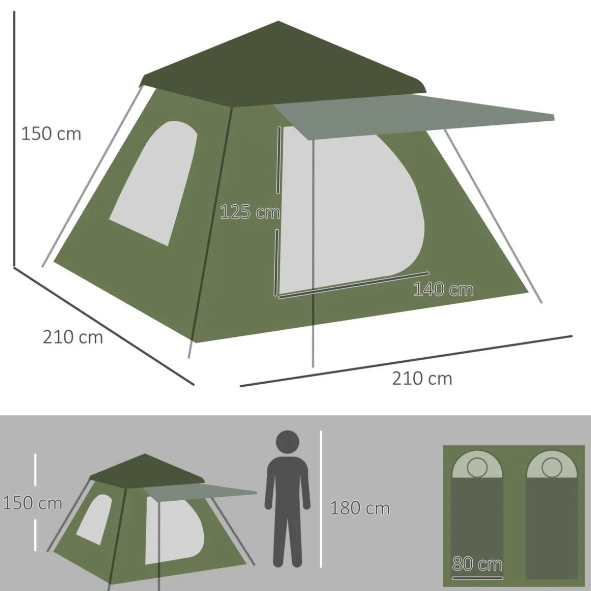 Outsunny – Tienda de campaña Pop Up 210x210x150cm Verde, una tienda para 2-3 personas que se puede montar en cuestión de minutos. Además del espacio interior, esta tienda de campaña impermeable permite convertir la puerta de tela junto a dos postes en un práctico avance en la parte delantera.
