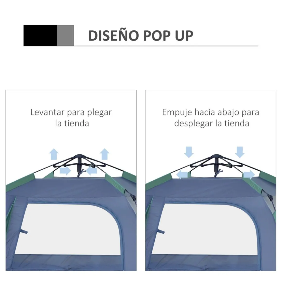 Outsunny – Tienda de campaña Pop Up 250x194x160 cm Verde, ligera y fácil de instalar sin esfuerzo, esta tienda de campaña para acampar es ideal para principiantes en acampar o para aquellos que viajan solos o con 1 acompañante o 2 como máximo.