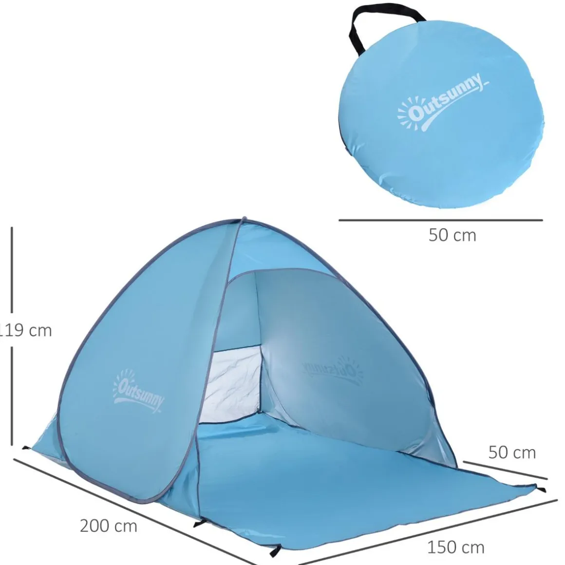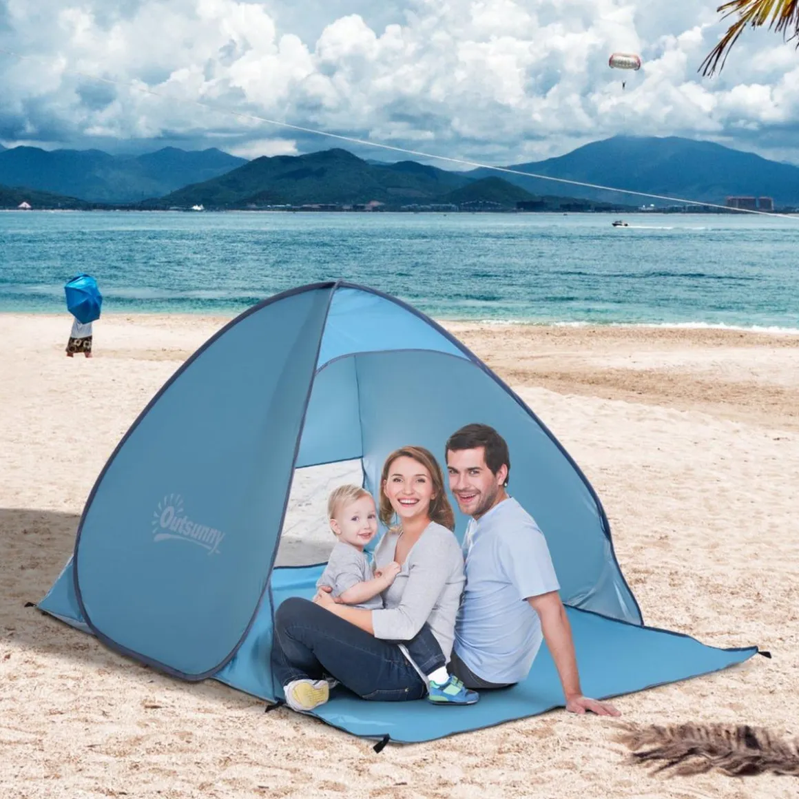 Outsunny – Tienda Pop Up playa Azul, este paravientos es la solución perfecta para resguardarte del sol y el viento en la playa, de camping, pícnic, etc. Adecuado para 2-3 personas.