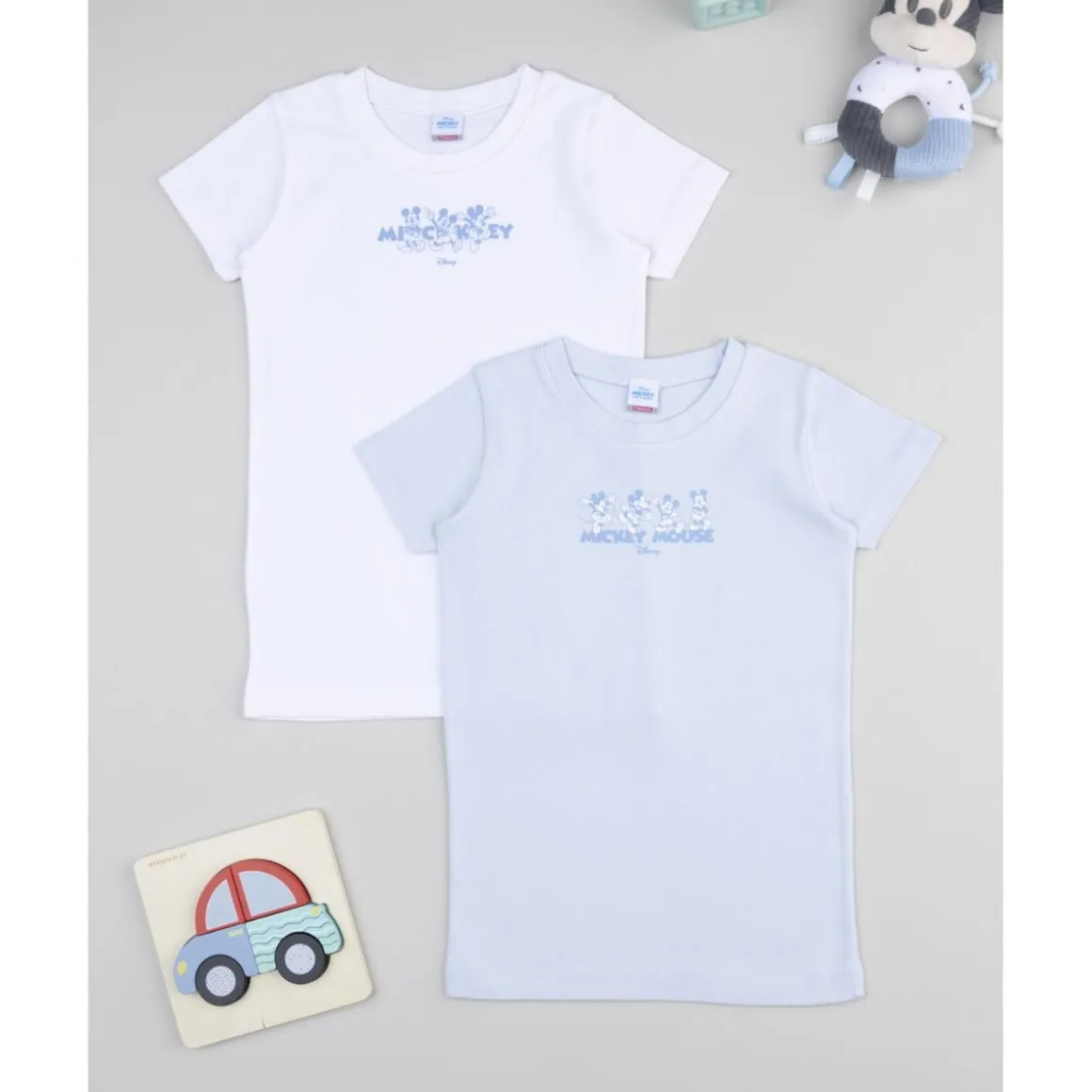 El pack de 2 camisetas de niño con diseño de Mickey es ideal para un estilo cómodo y divertido en el día a día. Incluye una camiseta blanca y otra azul claro, ambas con estampado coordinado del personaje más querido de Disney.