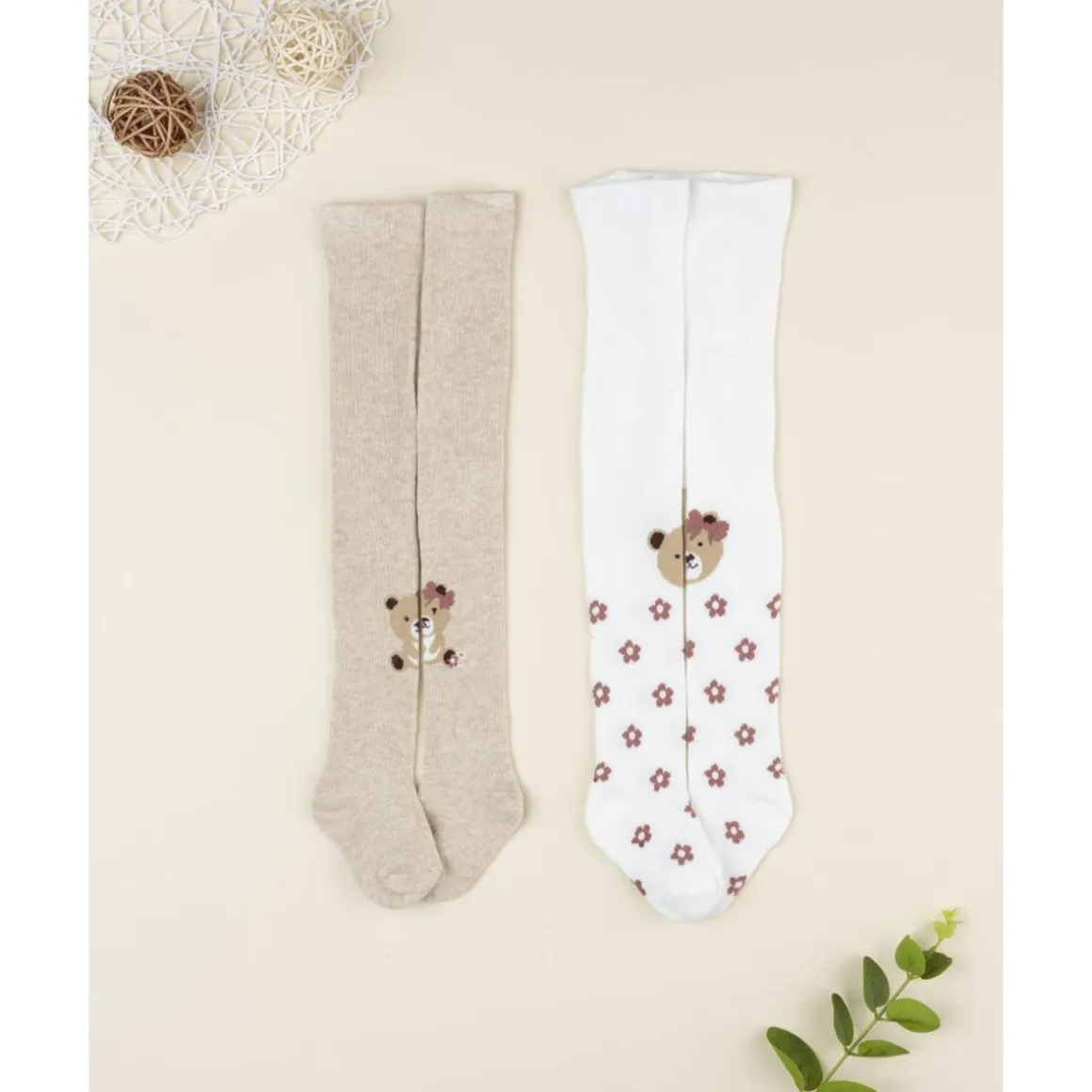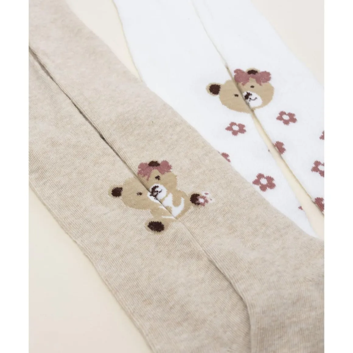El pack de 2 leotardos de niña blanco y beige con ositos combina comodidad, dulzura y calidez para los días más fríos. Cada par, uno en color beige y otro en blanco, presenta motivos de ositos decorativos que se unen a figura completa al juntar las piernas, creando un diseño tierno y divertido. Su tejido elástico ofrece libertad de movimiento sin oprimir.