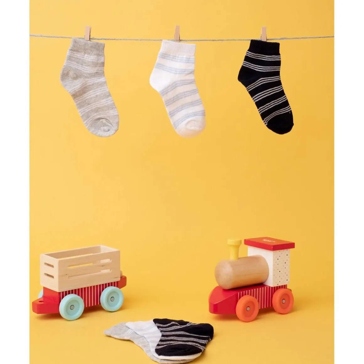 Paquete básico de 3 calcetines cortos para niños. Las prendas son de color sólido con rayitas blancas y van del blanco al negro al gris. El ajuste es suave y envolvente, los calcetines garantizan cero molestias. Accesorios no a la venta. El paquete contiene solo la prenda de vestir.