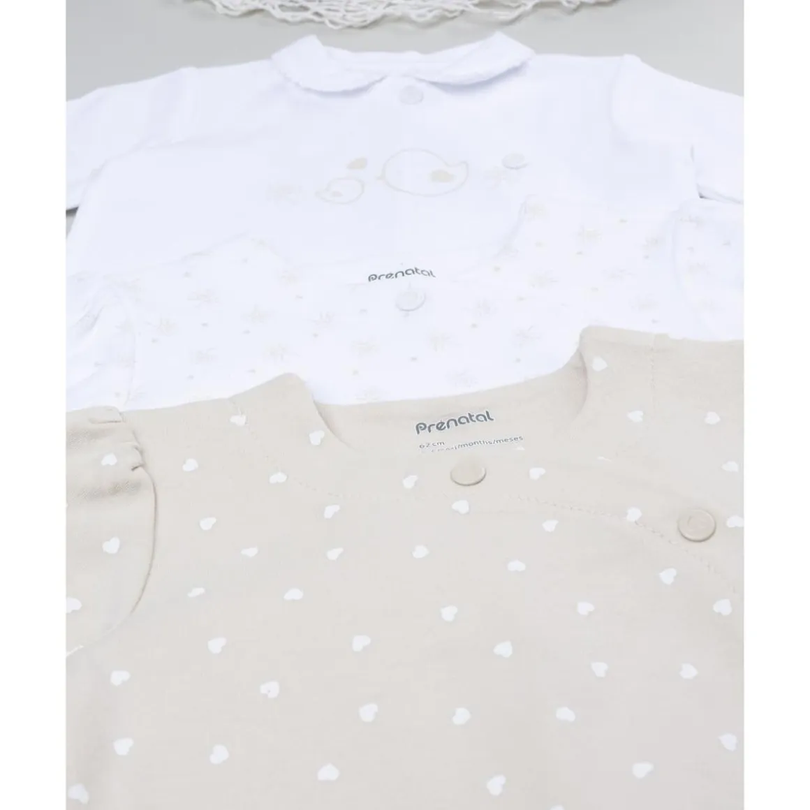 Pack 3 peleles interlock de recién nacida blanco/beige