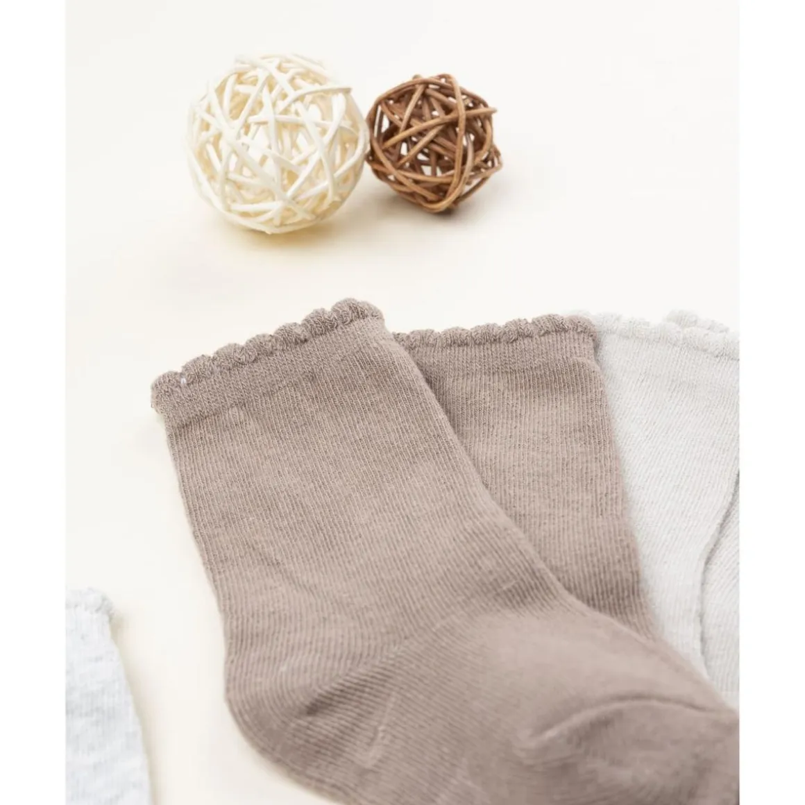 Este pack de calcetines para niña incluye cuatro pares en tonos rosa, gris, beige y marrón. Con diseño liso y ajuste suave, resultan cómodos para el uso diario. Un básico esencial para el vestuario infantil, que combina calidez y estilo sencillo.