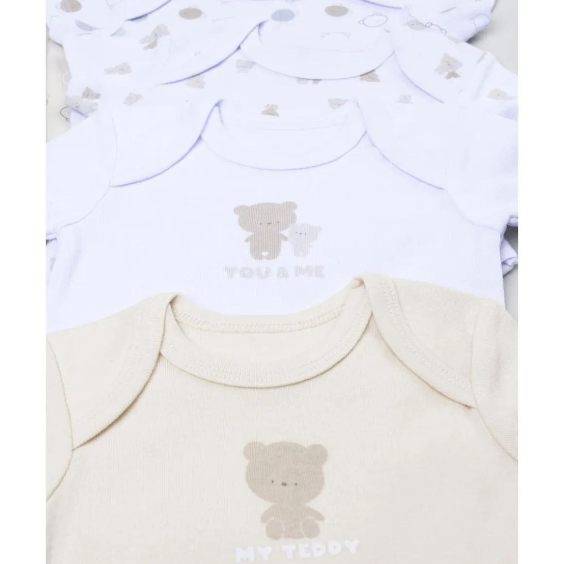 Pack 5 bodies de recién nacido osito blanco/beige