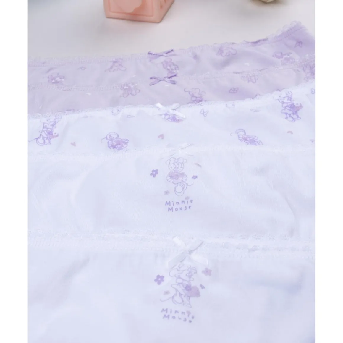 El pack de 5 braguitas para niña con estampados de Minnie combina comodidad y estilo en el día a día. Incluye piezas en blanco y lila, todas con motivos coordinados de la ratoncita Disney.