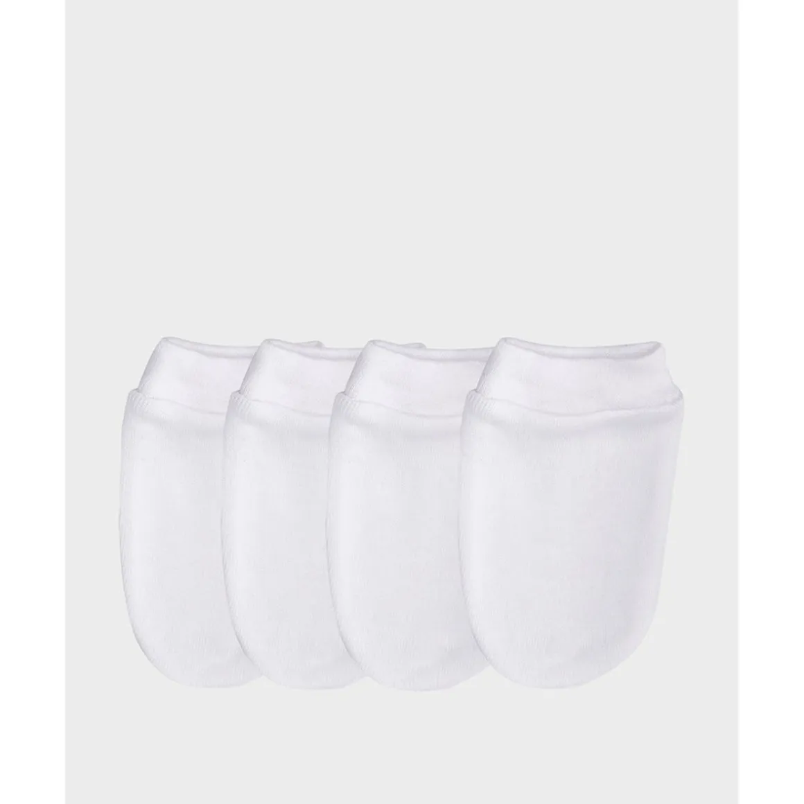 Pack de 2 pares de manoplas de algodón blancas. Pack de dos pares de manoplas de algodón de color blanco, imprescindibles para proteger al recién nacido de los primeros arañazos.SKU : 593788001